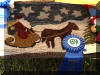 February 2015 Pale green whipping with rooster picture and blue backing with white buttons (taught by Julienne Stewart)